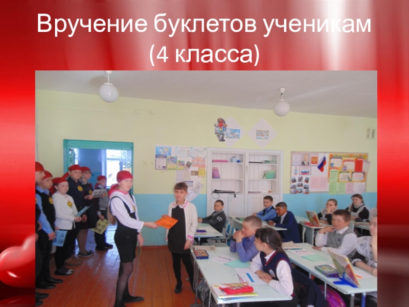Слайд 10Вручение буклетов ученикам (4 класса)