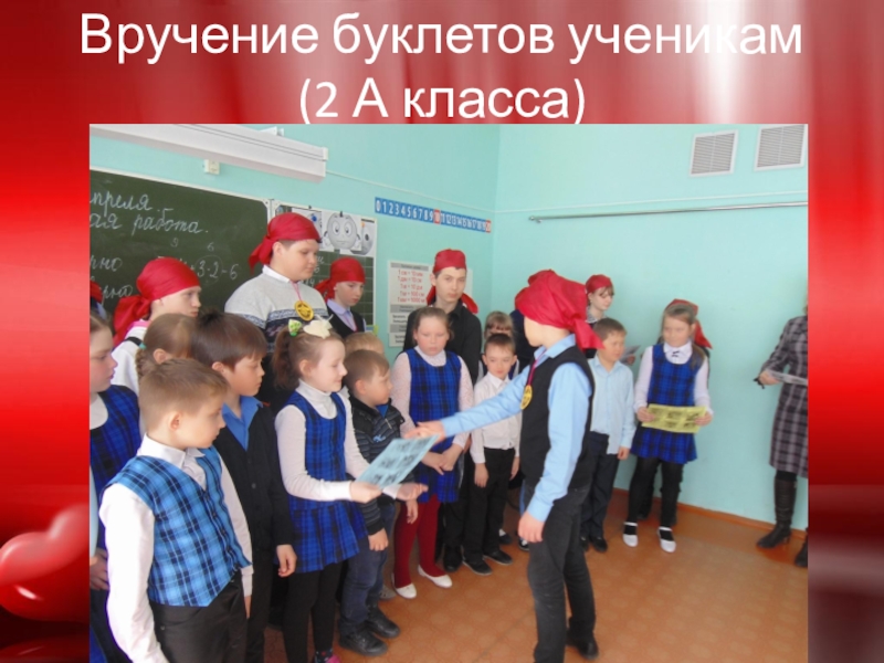 Слайд 11Вручение буклетов ученикам (2 А класса)