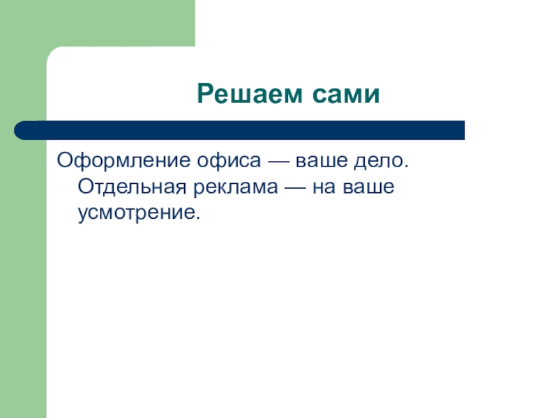 Оформление офиса — ваше дело. Отдельная реклама — на ваше