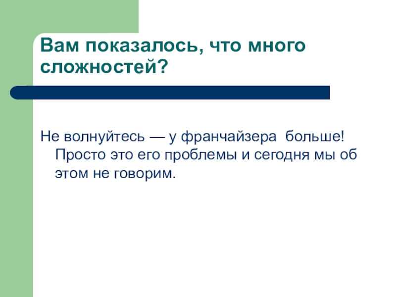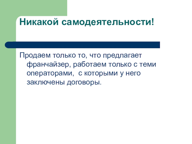 самостоятельного ведения бизнеса (работаем только с товаром франчайзера).