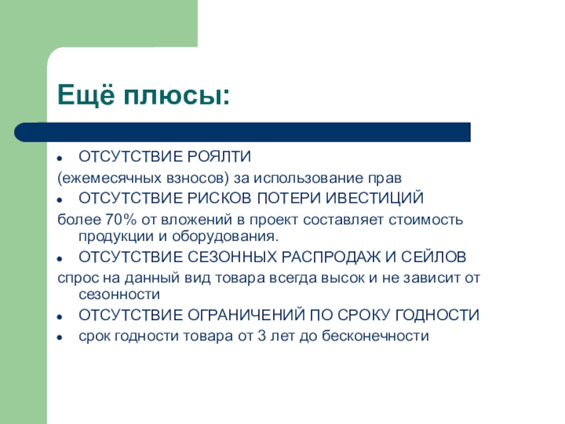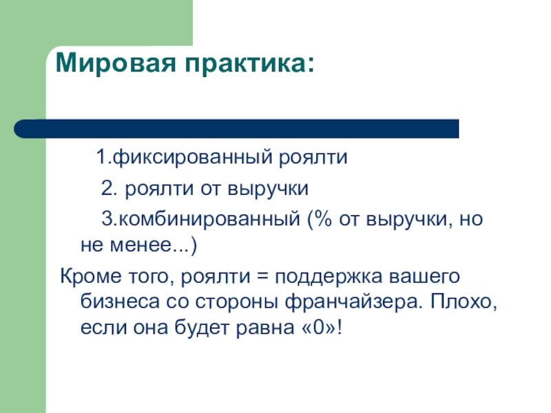 Кроме того, роялти = поддержка вашего бизнеса со стороны франчайзера. Плохо, если она будет равна «0»!