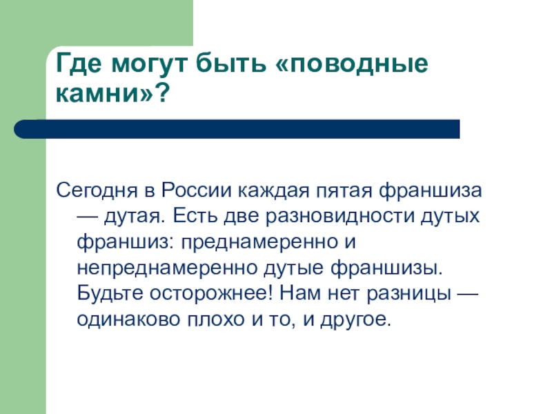 дутая. Есть две разновидности дутых франшиз: преднамеренно и непреднамеренно дутые франшизы. Будьте осторожнее! Нам нет разницы — одинаково плохо и то, и другое.