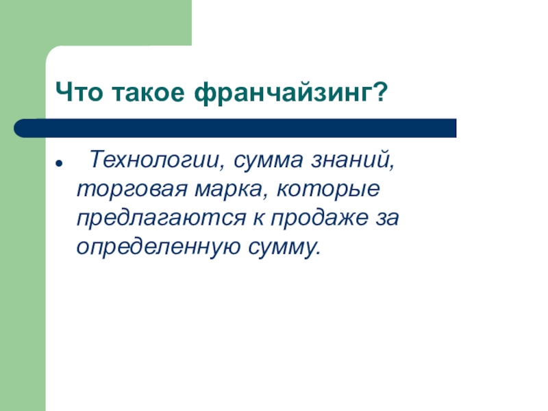Слайд 1Франчайзинг как форма предпринимательской деятельности