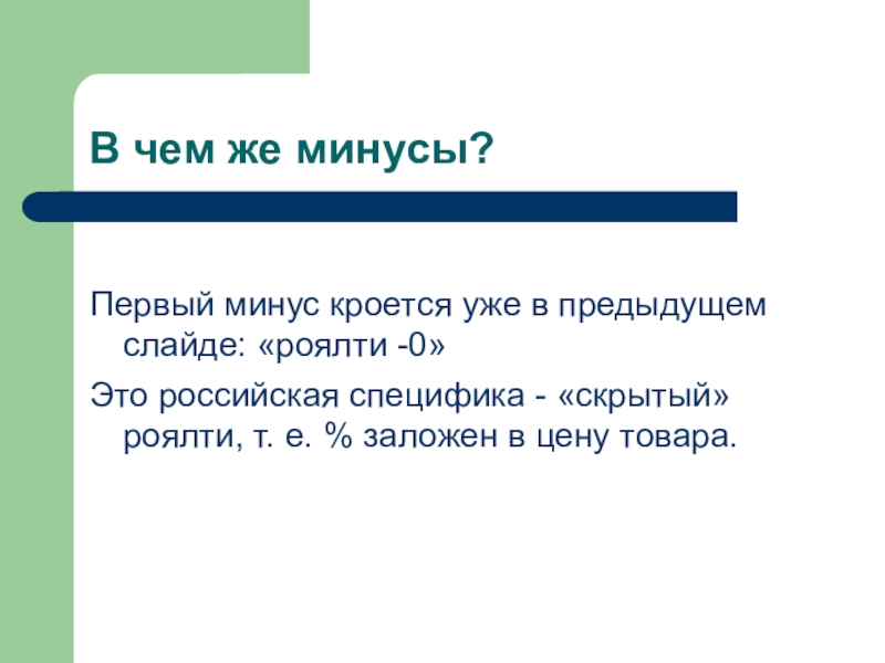 Первый минус кроется уже в предыдущем слайде: «роялти