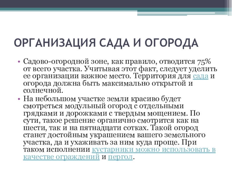 Слайд 4ОРГАНИЗАЦИЯ САДА И ОГОРОДА