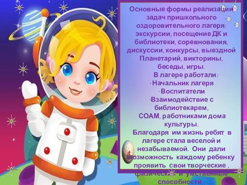 Дневной оздоровительный лагерь «Галактика радости» основан на базе МОУ Рождественской СОШ.
