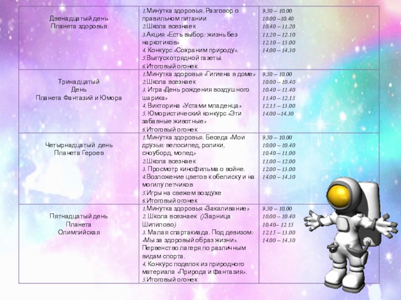 Летние каникулы - это период, когда дети могут «сделать свою жизнь» полной интересных знакомств, полезных увлечений и занятий, могут научиться петь, танцевать, играть, с пользой провести свободное время. Именно такие возможности для каждого ребенка открывают детские оздоровительные лагеря.