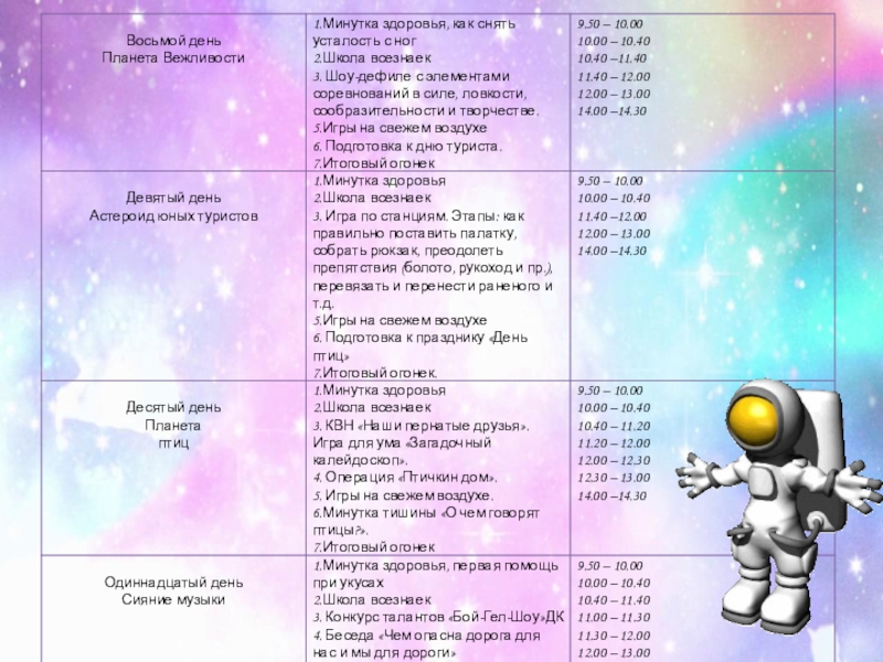 Организация пришкольных лагерей - одна из интереснейших и важнейших форм работы с обучающимися во время каникул. Основная миссия лагеря дневного пребывания - организация свободного времени детей, отдыха, их здоровья в летний период.