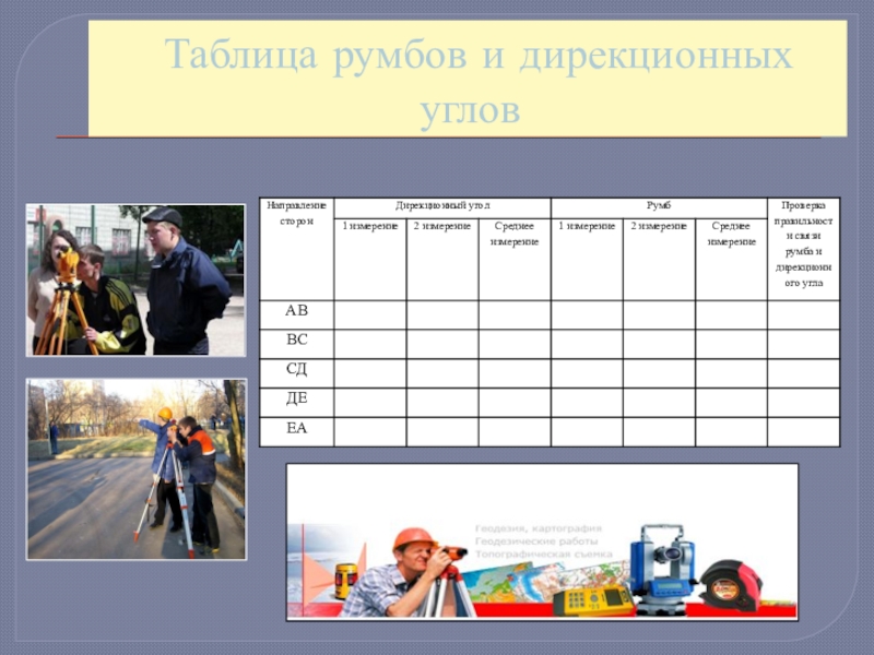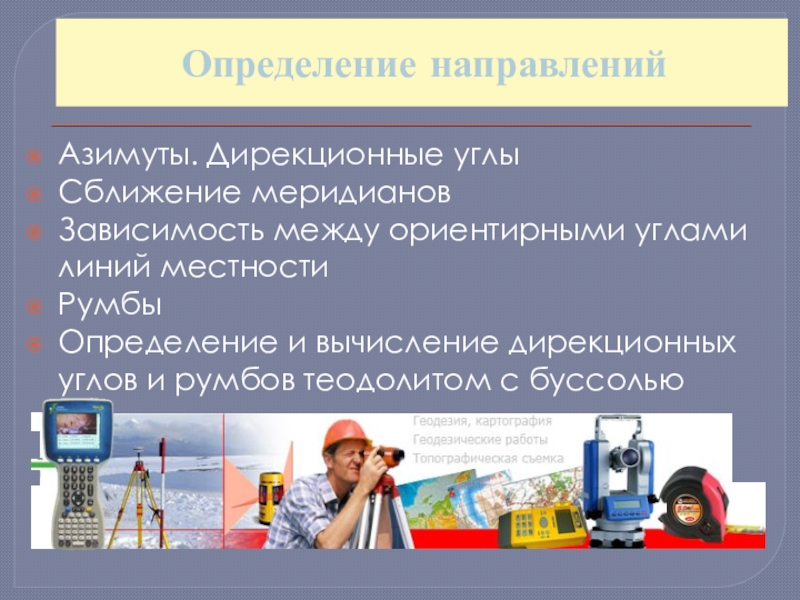 Слайд 14Определение и вычисление дирекционных углов и румбов теодолитом с буссолью