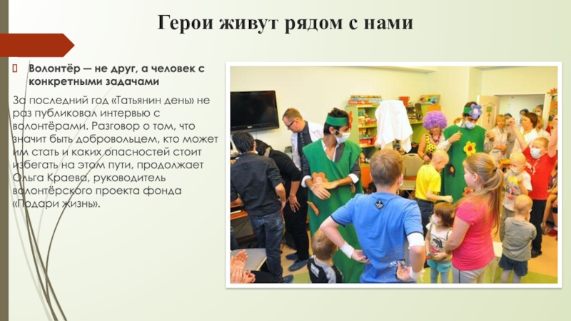 За последний год «Татьянин день» не раз публиковал интервью с волонтёрами. Разговор о том, что значит быть добровольцем, кто может им стать и каких опасностей стоит избегать на этом пути, продолжает Ольга Краева, руководитель волонтёрского проекта фонда «Подари жизнь».