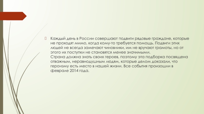 Слайд 2Каждый день в России совершают подвиги рядовые граждане, которые не проходят