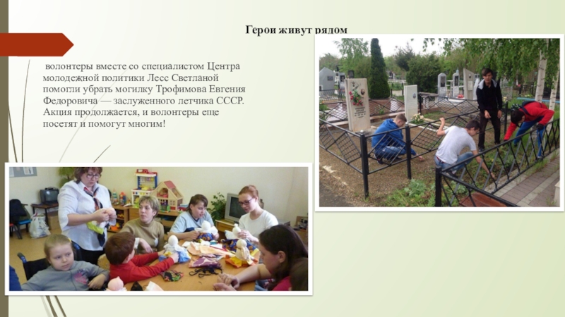 помогли убрать могилку Трофимова Евгения Федоровича — заслуженного летчика СССР. Акция продолжается, и волонтеры еще посетят и помогут многим!