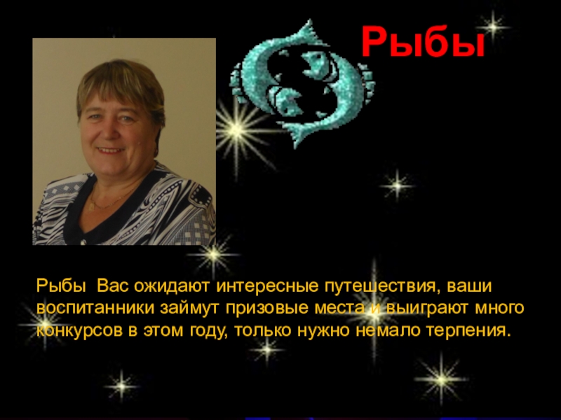 РыбыРыбы Вас ожидают интересные путешествия, ваши воспитанники займут призовые места и выиграют много конкурсов в этом году,