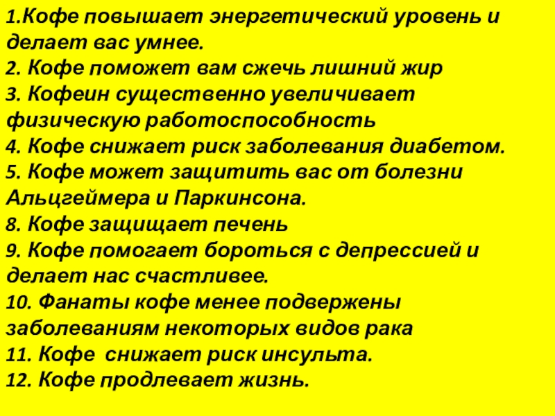 Слайд 231.Кофе повышает энергетический уровень и делает вас умнее.