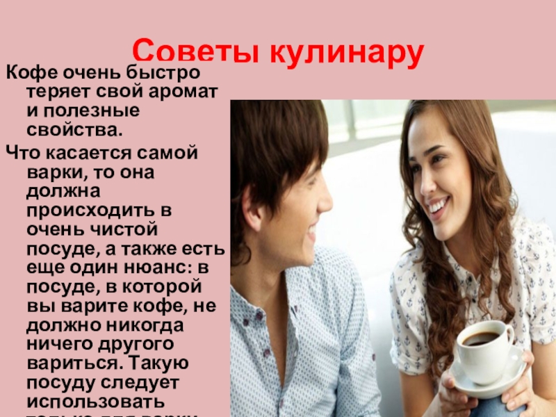 самой варки, то она должна происходить в очень чистой посуде, а также есть еще один нюанс: в посуде, в которой вы варите кофе, не должно никогда ничего другого вариться. Такую посуду следует использовать только для варки кофе, а не чего-то другого.