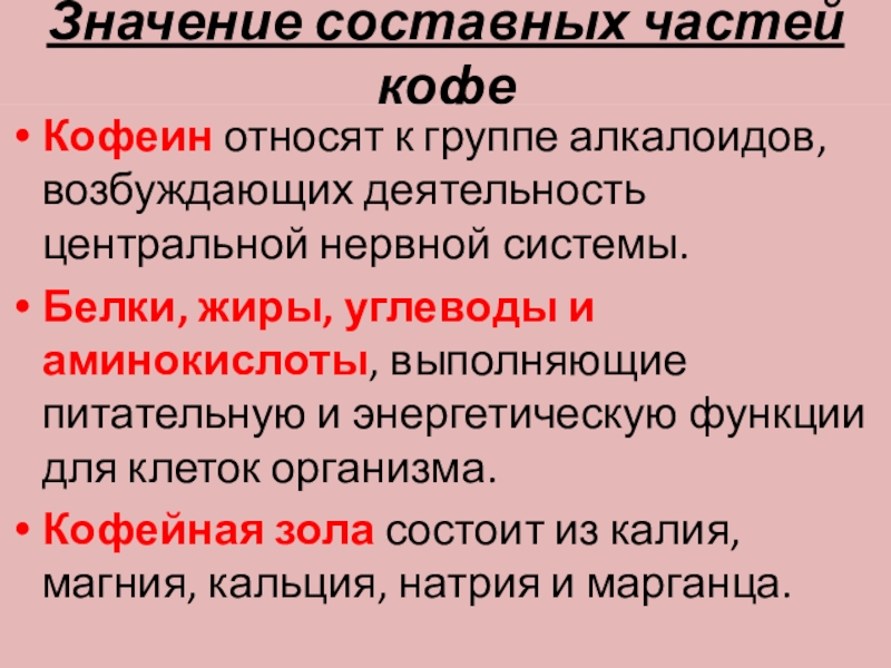 Кофеин относят к группе алкалоидов, возбуждающих деятельность центральной