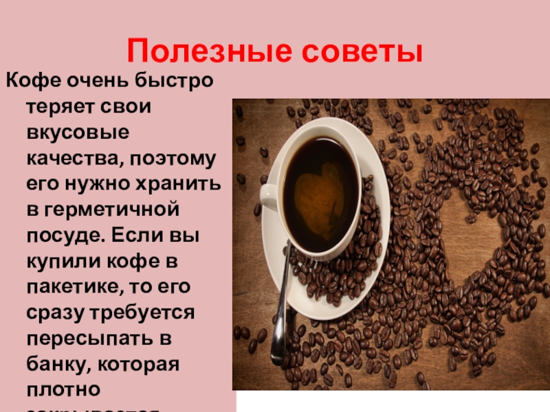 Кофе очень быстро теряет свой аромат и полезные свойства.