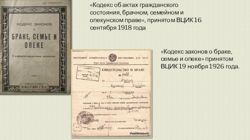 «Кодекс законов о браке, семье и опеке» принятом ВЦИК 19 ноября 1926 года.