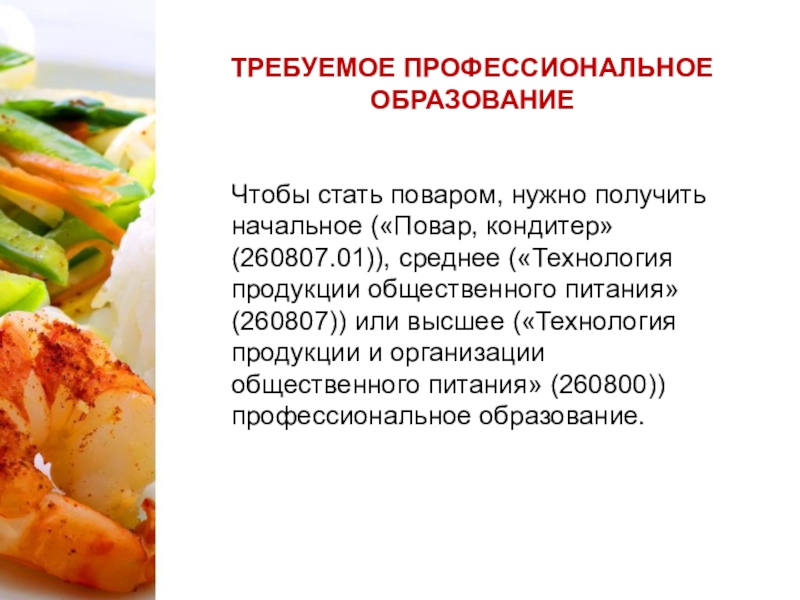 Чтобы стать поваром, нужно получить начальное («Повар, кондитер» (260807.01)),