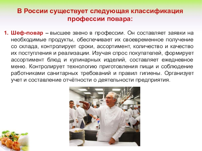 Профессия повара востребована в любой отрасли: в школах, больницах, детских