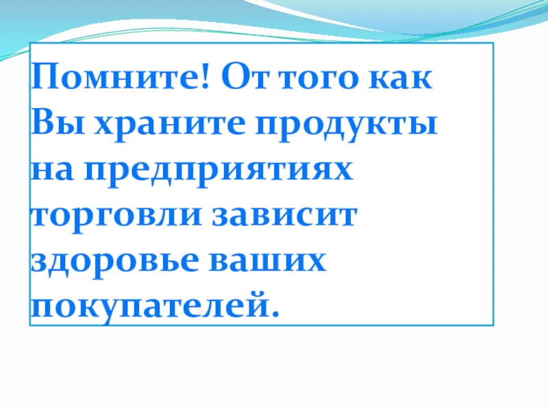 Слайд 22Помните! От того как Вы храните продукты на предприятиях торговли зависит