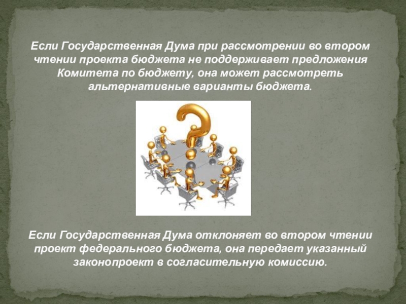 Если Государственная Дума не принимает проект бюджета в первом чтении, то она может: