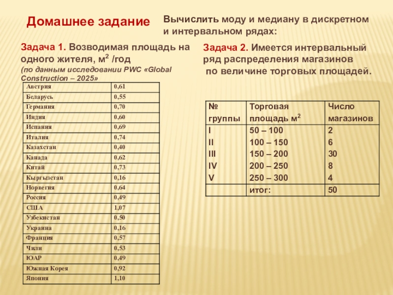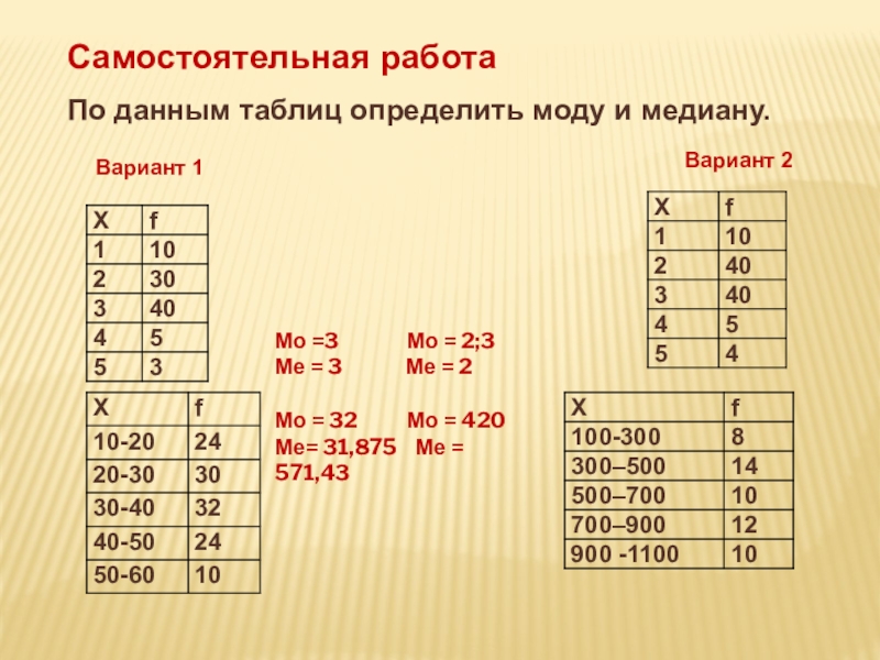 Вычислить моду и медиану в дискретном и интервальном рядах: