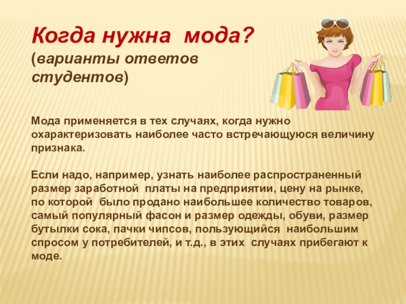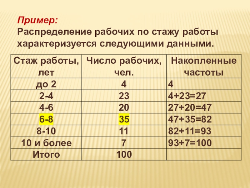 Пример 2: Распределение проданной женской обуви по размерам характеризуется следующим образом: