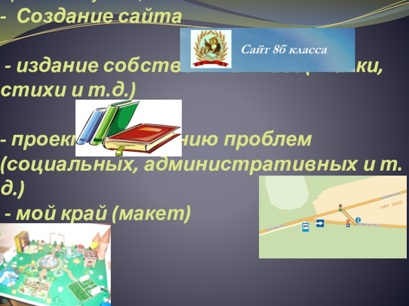 Слайд 5 проекты учащихся - Создание сайта - издание собственной книги(сказки, стихи и