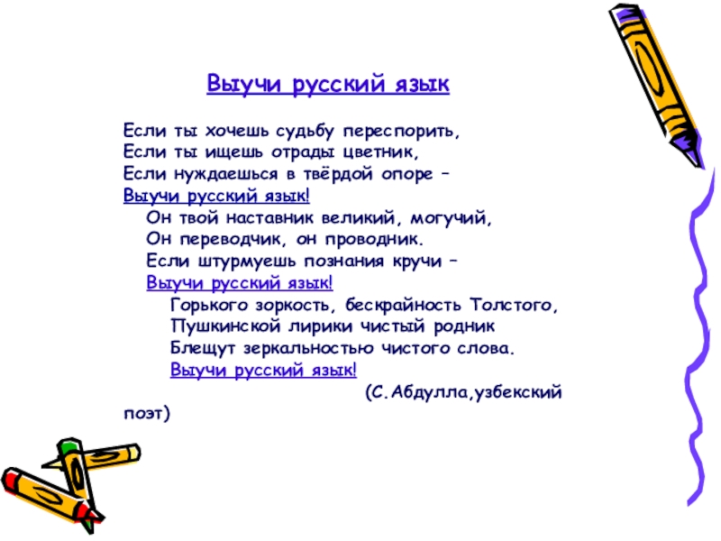 Русский язык чрезвычайно богат, гибок и живописен для выражения простых, естественных понятий…
