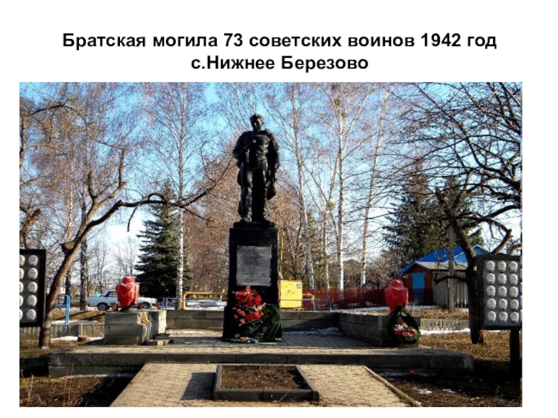 Слайд 27Братская могила 73 советских воинов 1942 год с.Нижнее Березово