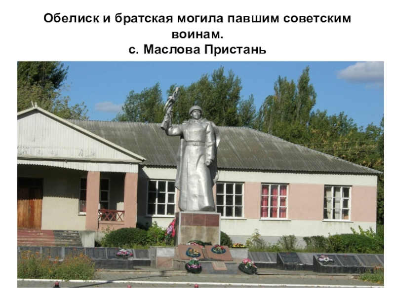 Слайд 22Обелиск и братская могила павшим советским воинам. с. Маслова Пристань