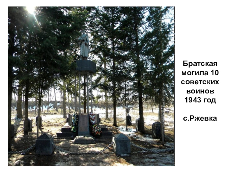 Слайд 29Братская могила 10 советских воинов 1943 год с.Ржевка