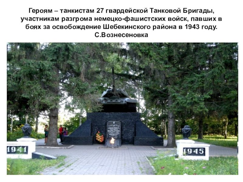 Героям – танкистам 27 гвардейской Танковой Бригады, участникам разгрома немецко-фашистских войск, павших в боях за освобождение Шебекинского