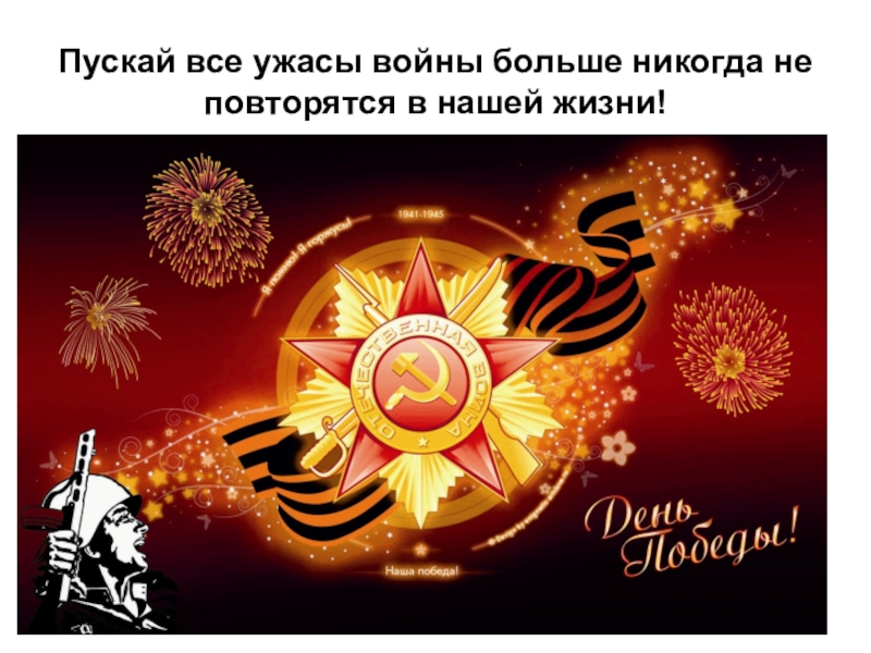 Слайд 32Пускай все ужасы войны больше никогда не повторятся в нашей жизни!