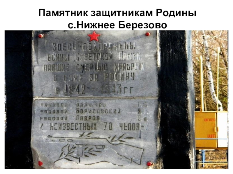 Слайд 24Памятник защитникам Родины с.Нижнее Березово