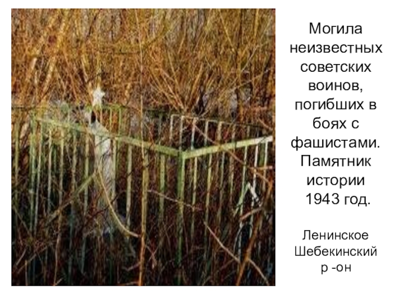 Слайд 25Могила неизвестных советских воинов, погибших в боях с фашистами. Памятник истории
