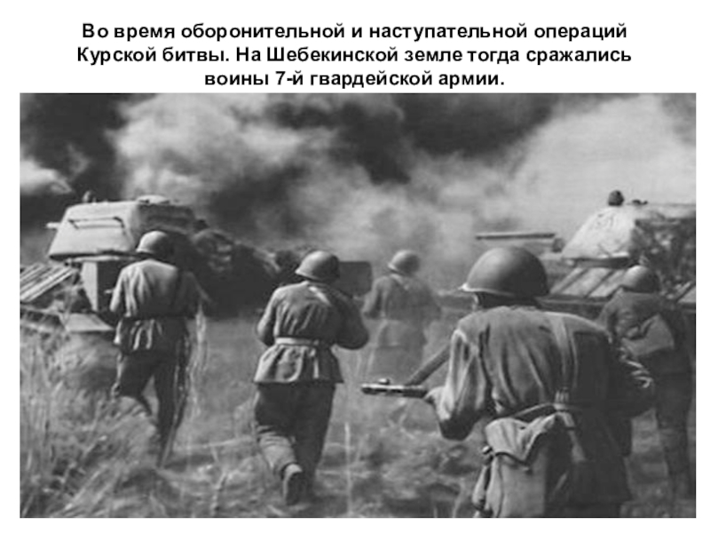 Слайд 7Во время оборонительной и наступательной операций Курской битвы. На Шебекинской земле