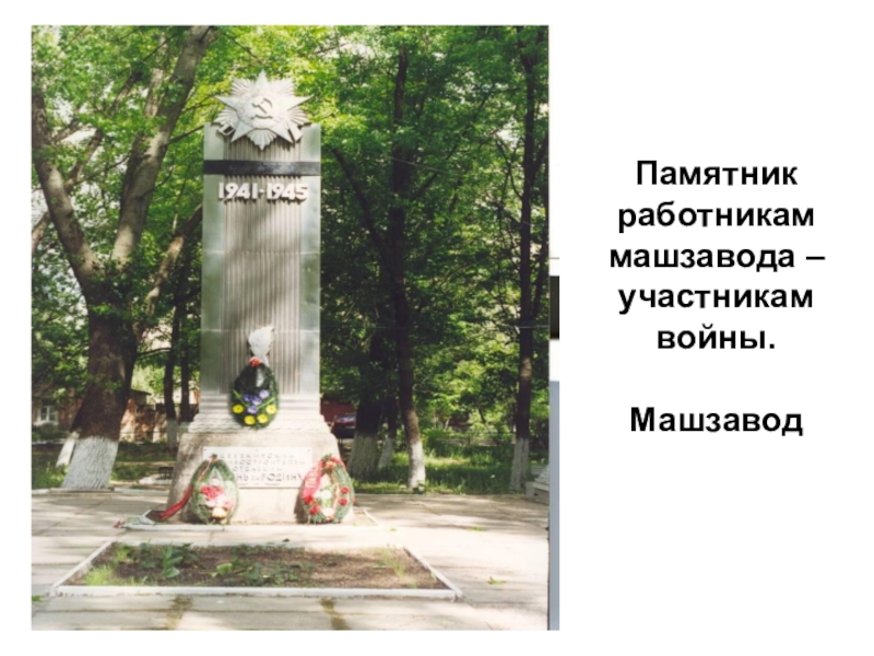 Слайд 17Памятник работникам машзавода – участникам войны. Машзавод