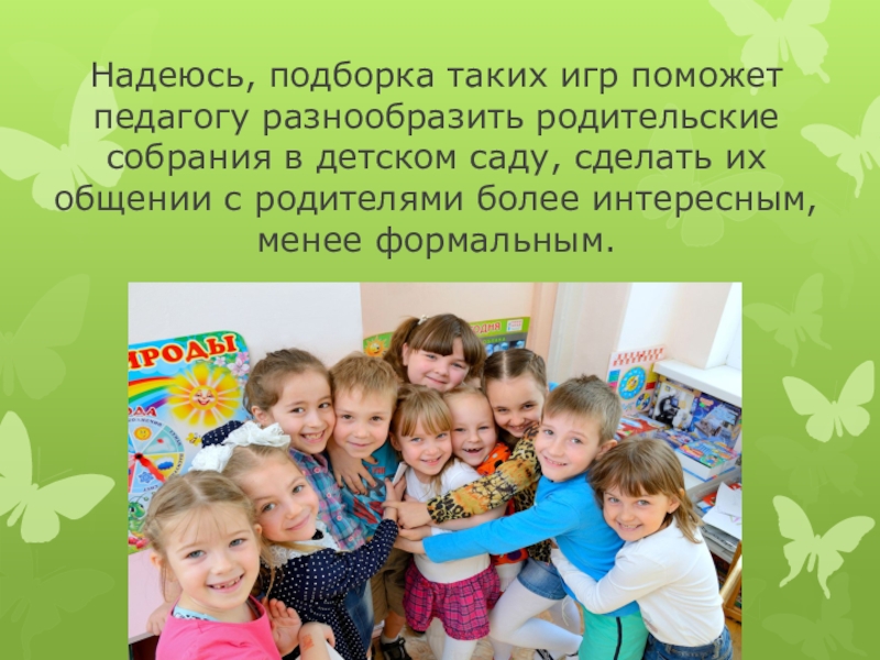 Слайд 12Надеюсь, подборка таких игр поможет педагогу разнообразить родительские собрания в детском