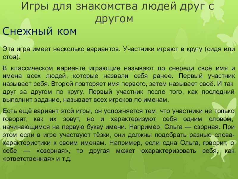Слайд 7Игра «Имя – движение» (вариант «Снежного кома»)