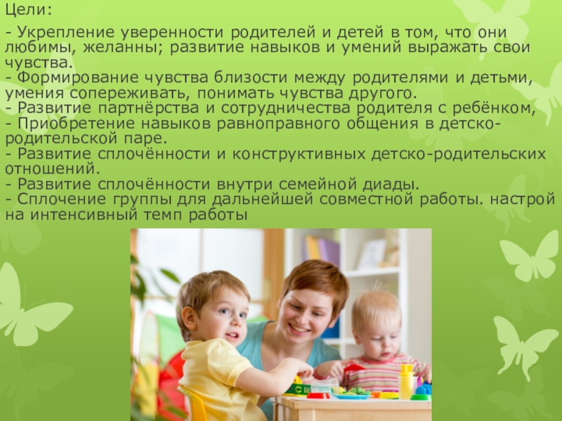 - Укрепление уверенности родителей и детей в том, что они любимы,
