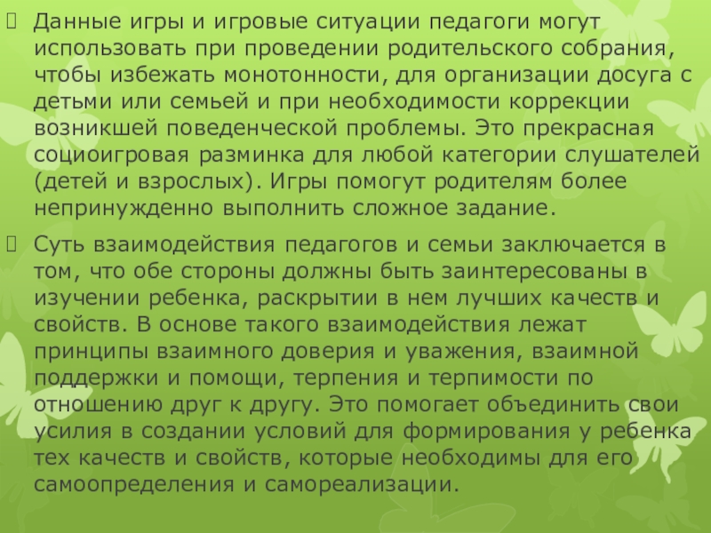 Слайд 3Данные игры и игровые ситуации педагоги могут использовать при проведении родительского