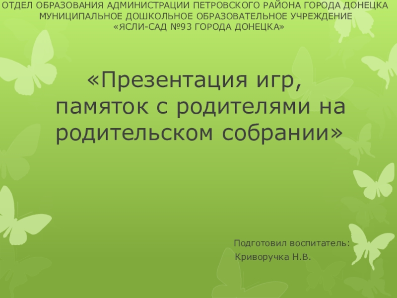 Слайд 1ОТДЕЛ ОБРАЗОВАНИЯ АДМИНИСТРАЦИИ ПЕТРОВСКОГО РАЙОНА ГОРОДА ДОНЕЦКА