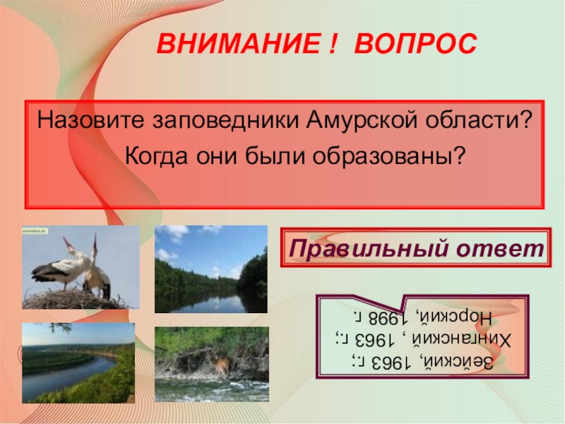 Зейский, 1963 г.; Хинганский , 1963 г.; Норский, 1998 г.