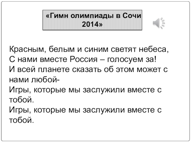 Слайд 15«Гимн олимпиады в Сочи 2014»