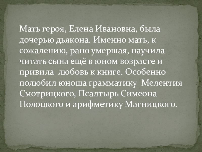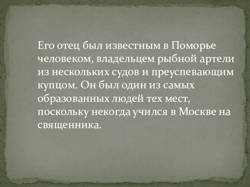 нескольких судов и преуспевающим купцом. Он был один из самых образованных людей тех мест, поскольку некогда учился в Москве на священника.