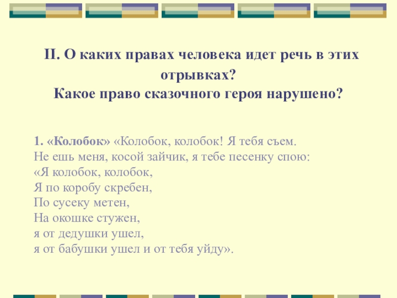 1. «Колобок» «Колобок, колобок! Я тебя съем.