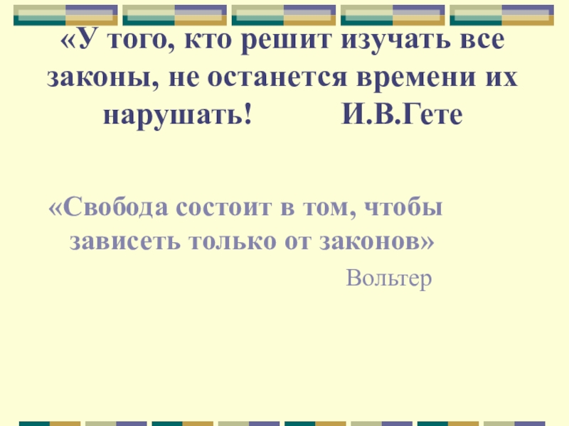 «Свобода состоит в том, чтобы зависеть только от законов»