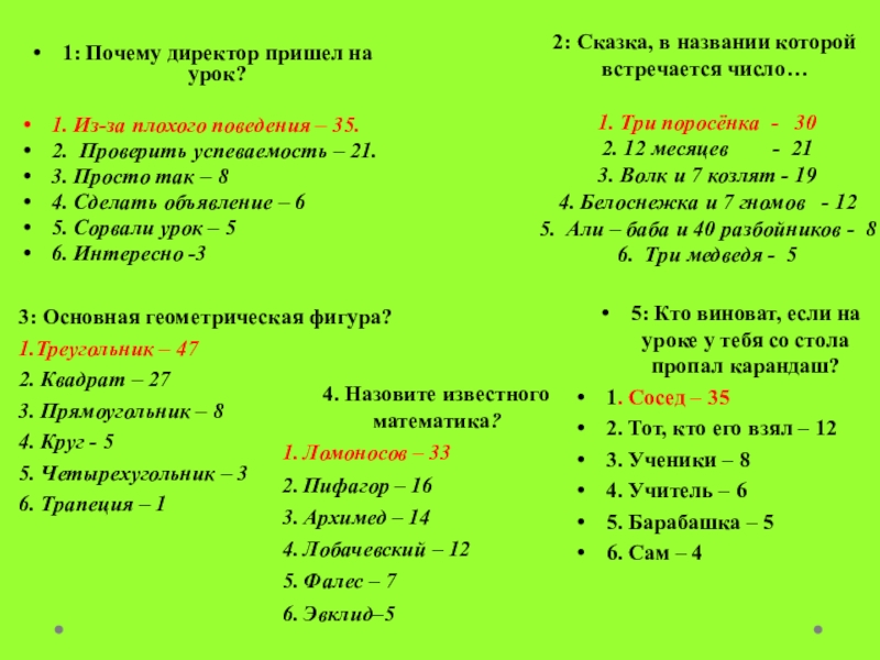 5: Кто виноват, если на уроке у тебя со стола пропал карандаш?